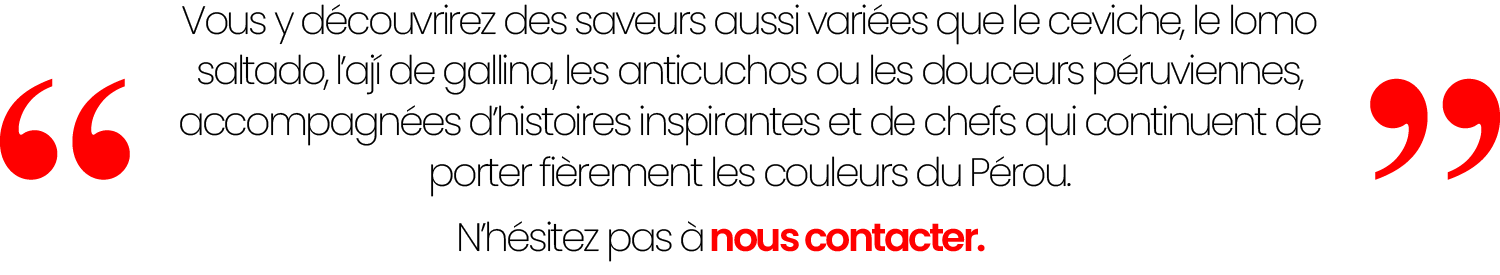 Ce guide a été créé pour relier la communauté à ces lieux qui maintiennent vivante l’essence du Pérou: sa saveur, son hospitalité et sa fierté. Vous y trouverez des recommandations sélectionnées, des informations actualisées et une invitation permanente à explorer de nouvelles saveurs.